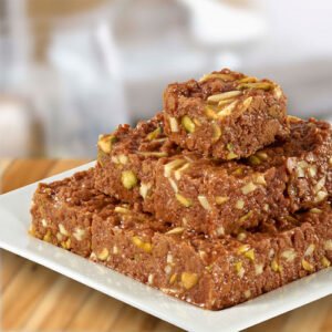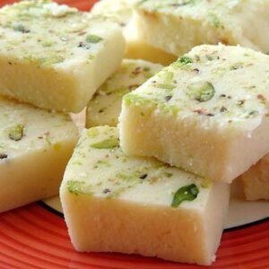 Soan Papdi is a popular Indian sweet known for its flaky, melt-in-your-mouth texture. Made from gram flour, sugar, and ghee, it’s delicately flavored with cardamom and garnished with almonds and pistachios. This light and crispy treat is perfect for festivals or as a delightful snack any time of the day.